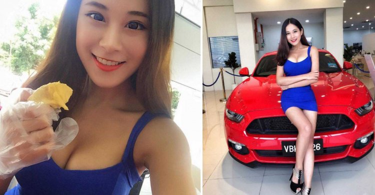 車模妹「深溝餵食」眼睛不知道看哪了… 秒充血