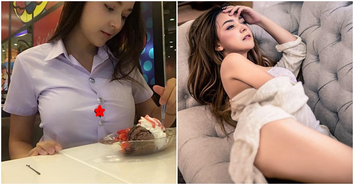 正妹上圍飽滿....只見她「襯衫釦子快爆開」了!